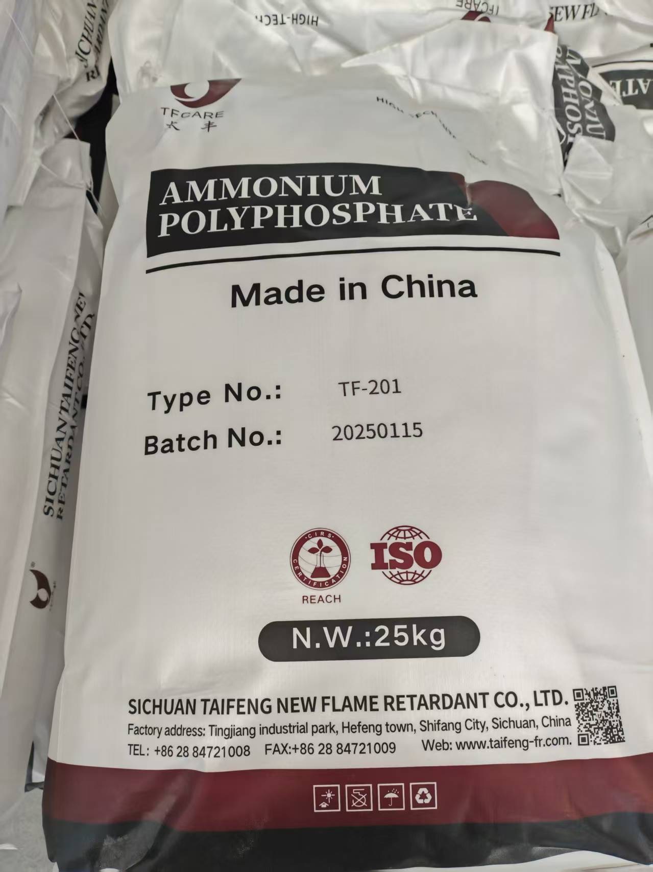 TF-201, es istgleichwertig mit Clariant Exolit AP422fürintumeszierende Beschichtungen. wird verwendet fürintumeszierende feuerfeste Beschichtungen.Es wird häufig fürFarbenundBrandschutzbeschichtungenauf Holz undBaustahl, undSperrholz, undHolz-Kunststoff-Verbundwerkstoffeverwendet.